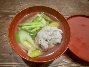 熱々のメギス団子のお汁、出来上がり。